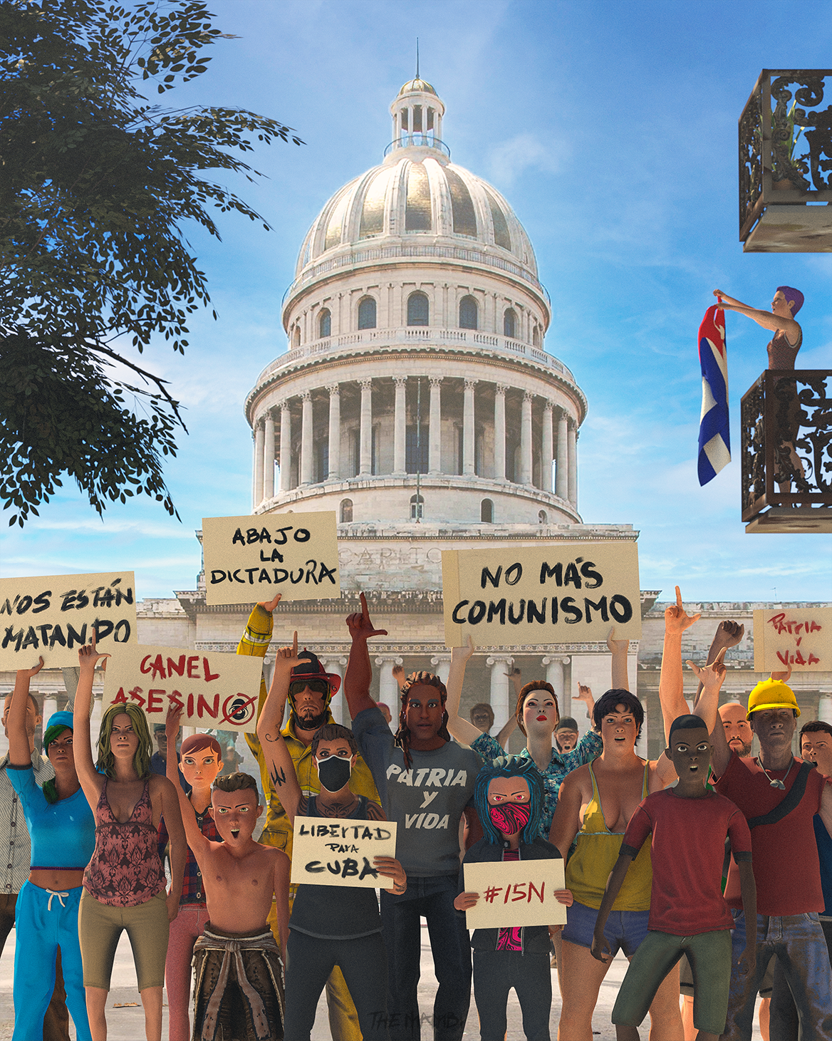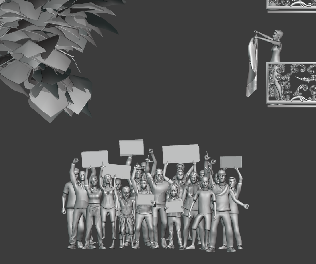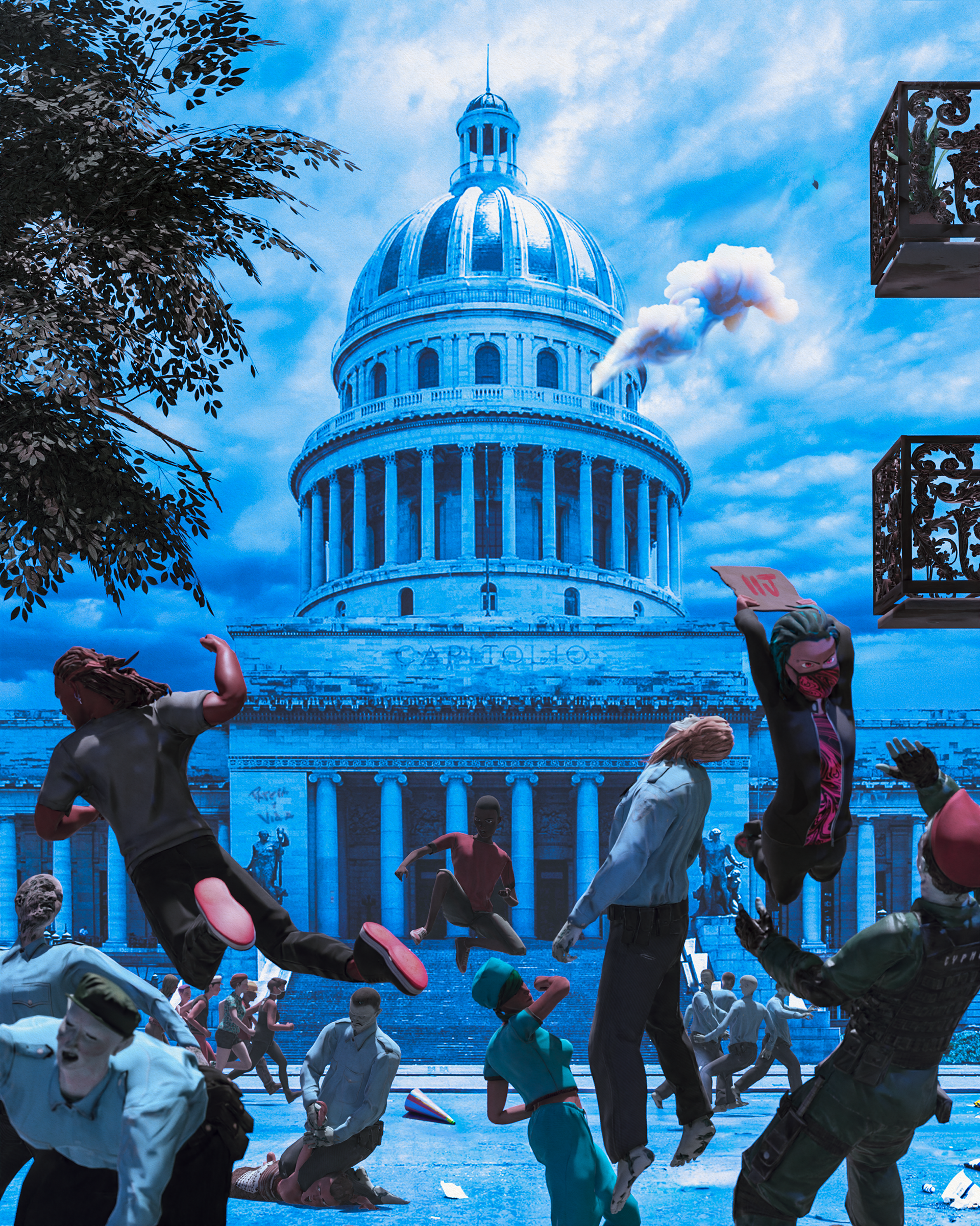 This 3D scene I created in Blender has become one of my most popular works surpassing a thousand likes on Instagram. I textured most assets in Quixel Mixer and also used free 3d assets from TurboSquid. I used the Blender addon fSpy to match the camera and perspective of the original capitol photo. I created and rigged the characters using Blender and Mixamo. I added volumetric lighting and cinematic techniques to bring everything to life.
