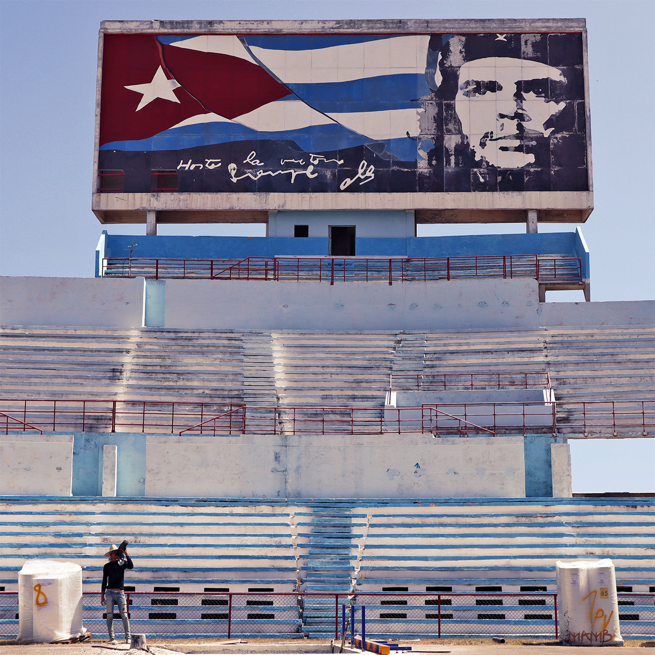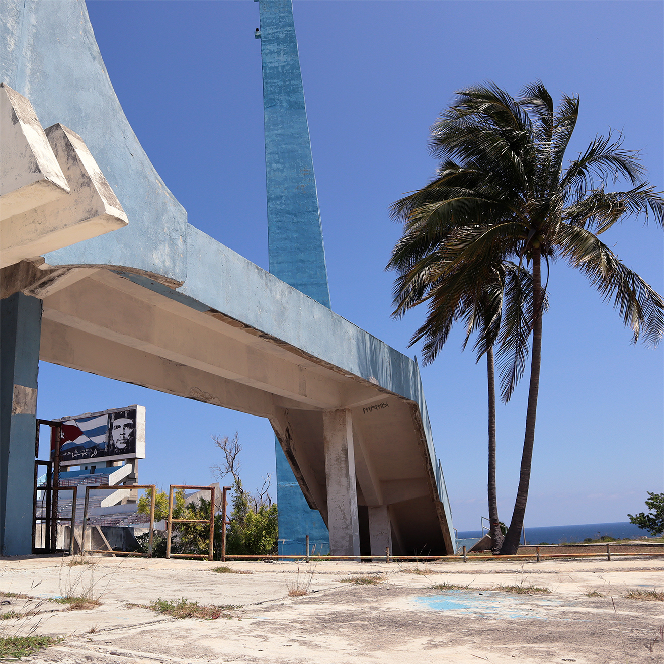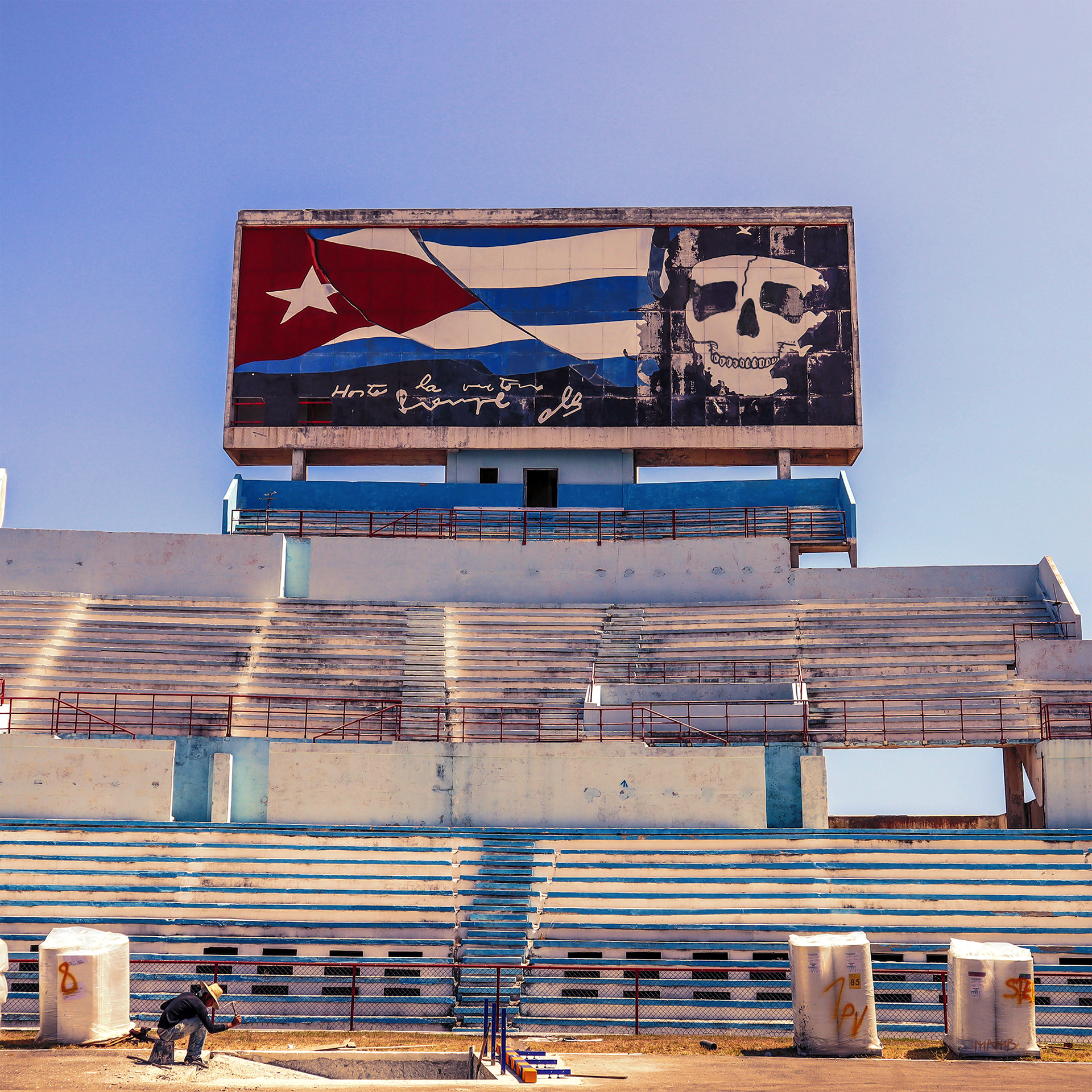 This is a digital collage I created based on my trip to Cuba in 2019. I visited a stadium near Havana that was in ruins and had people living inside. I used Photoshop to combine a photo I took there with the Cuban flag and a Che Guevara skull that I drew in Procreate. I wanted to capture the contrast between the old revolutionary ideals and the harsh reality of Cuba.