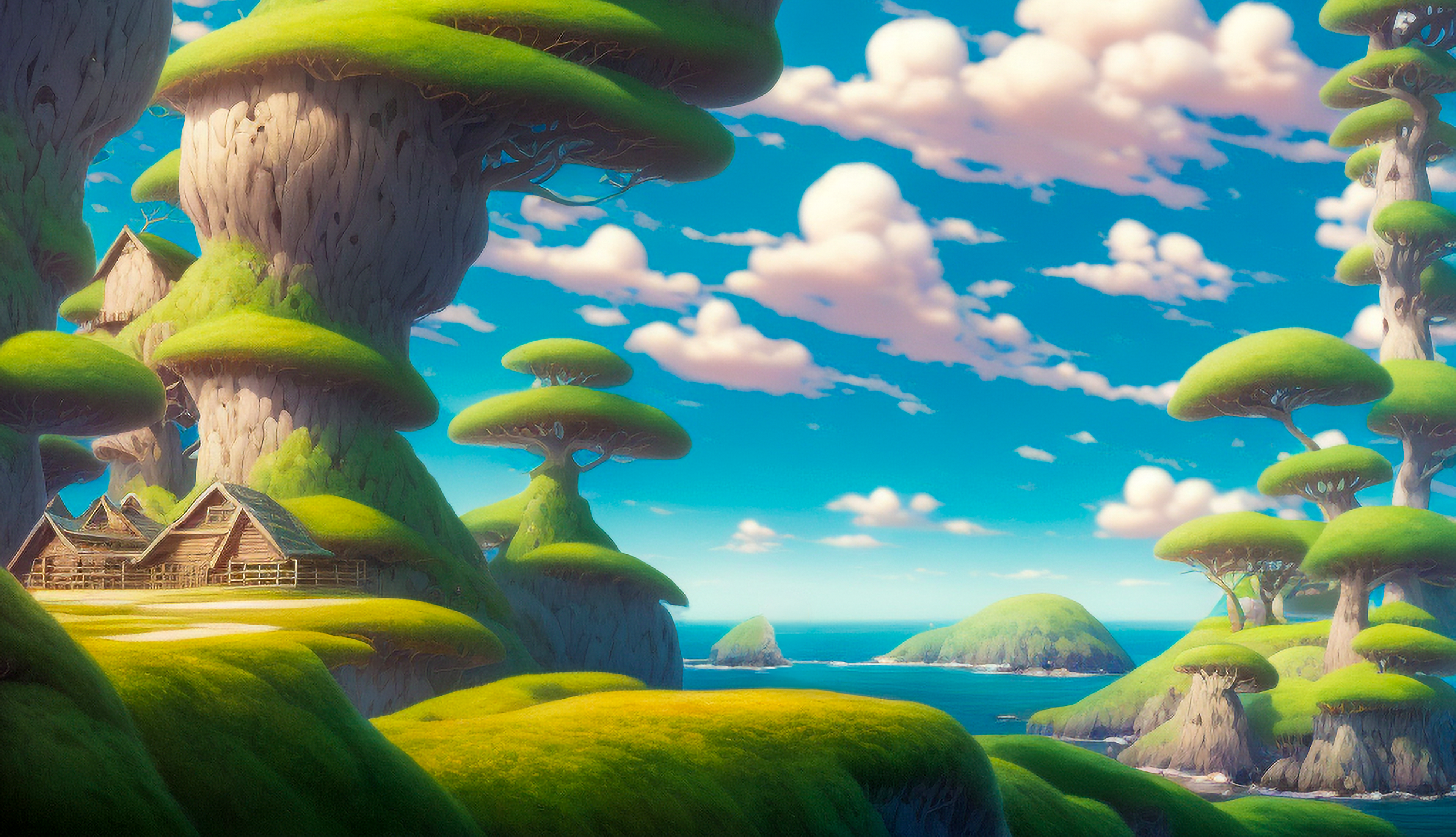 Mambiland island. A place where artists can live in peace and harmony. A dream of freedom and beauty. Work created with Stable Diffusion AI and Photoshop.