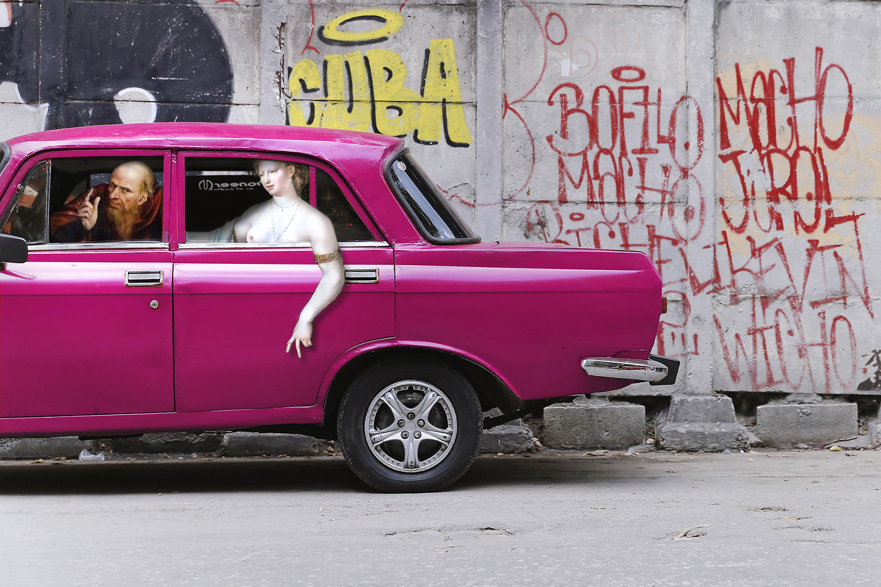 A digital collage that explores the complex and diverse Havana transportation system. I used Photoshop to create this collage from a Cuba photo and a classic renascent painting. I wanted to capture the contrast between the old and the new, the colorful and the grim, the chaotic and the orderly.