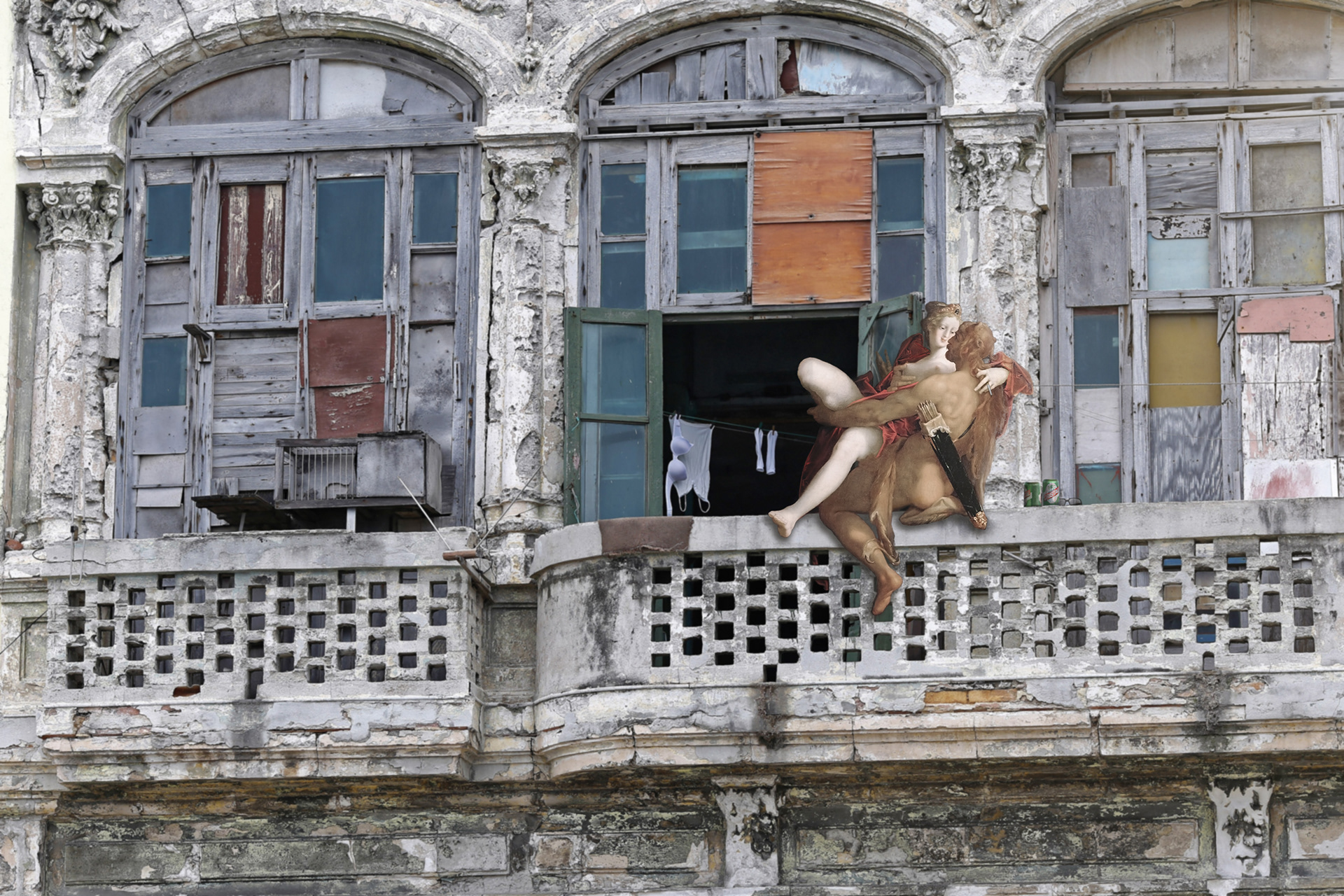 This collage is one of my early works, where I experimented with blending different sources and styles. I combined a Wikipedia photo of a street in Havana with a Renaissance painting of a couple. I wanted to create a contrast between the historical and the contemporary and to show how Cubans can find joy and love in any situation. The collage is a tribute to their resilience and spirit.